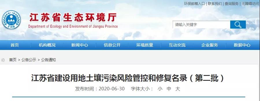 江蘇省生態(tài)環(huán)境公布廳江蘇省建設用地土壤污染風險管控和修復名錄(第二批)